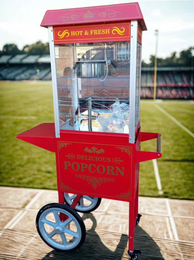 Lass den Retro-Zauber auf deiner nächsten Feier lebendig werden! Die Popcornmaschine im nostalgischen Design sorgt für frisch zubereitetes Popcorn und ist zugleich ein stilvolles Highlight, das deine Gäste begeistern wird.